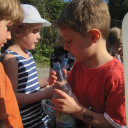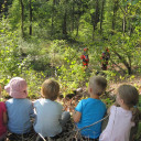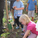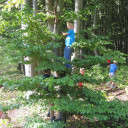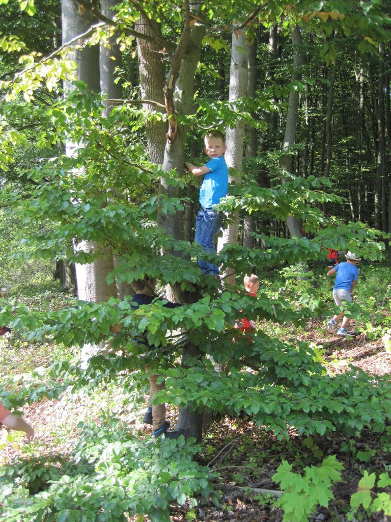 Dies war der „Wegespruch“ der Jupiterkinder, von Förster Thomas erzählt, zum Jenaer Stadtwald im Mühltal. Vor einem Jahr pflanzten Eltern mit ihren Kindern Tannen in Kooperation mit dem Jenaer Stadtforst. Trotz der großen Trockenheit sind von ca. 20 kleinen Tannen nur drei vertrocknet und nicht angewachsen. Die Kinder gossen die Tannen und pflanzten drei neue. In 10 Jahren werden sie erst die Größe der Kinder erreicht haben! Zur gleichen Zeit übte die Berufsfeuerwehr Jena im Wald das Klettern. Es war ein sehr aufregender Vormittag im warmen September.