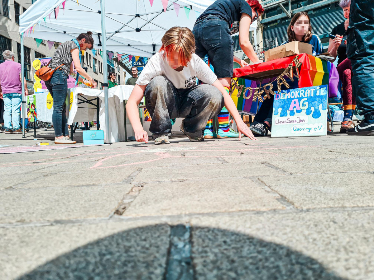 Am 28.5. fand in Jena der Tag der Vielfalt statt! Gemeinsam mit der Kindersprachbrücke, Jumäx und der SBW Lebenshilfe haben wir über Intersektionalität aufgeklärt und persönliche Privilegien mit der »Flower of Power« gecheckt. Es ist so wichtig, unsere unterschiedlichen Lebensrealitäten zu verstehen und Ungerechtigkeiten durch Reflexion und entsprechendes Handeln zu bekämpfen – und darüber aufzuklären. Dafür ist der Jenaer Tag der Vielfalt, organisiert von unserer Lichtstadt, perfekt geeignet. Die inhaltliche Zusammenarbeit der vier Träger zu diesem Thema und der gemeinsame Stand vor dem Stadtlab haben uns viel Spaß gemacht.