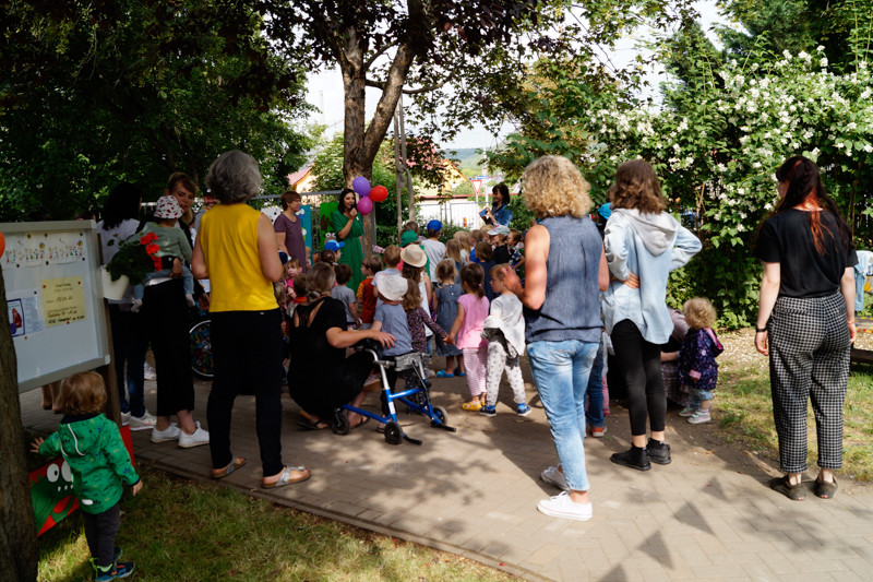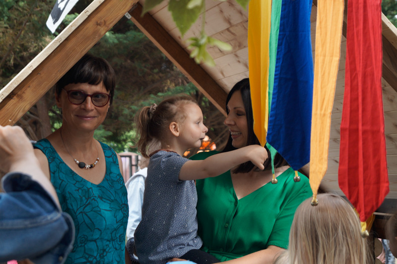 Der Montag unserer Festwoche startete bunt, lecker und mit einem lauten “Ahoi”. Wir konnten offiziell unser neues Piratenschiff einweihen, dass mit großartiger Unterstützung zweier Schwabenhaus-Papas in vielen Arbeitstunden erbaut wurde. Ein wunderschönes Geschenk für unsere Kinder, die das neue Spielgerät gleich begeistert stürmten. Dazu gab es leckeren Jubiläumskuchen, Seifenblasen, Kinderdisko und und und.