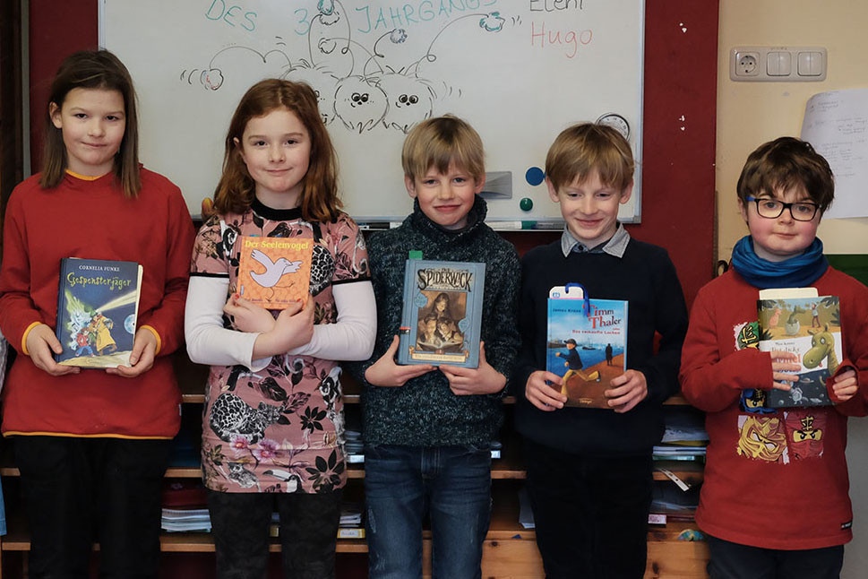 Gestern fand der jährliche und mit Spannung erwartete Vorlesewettbewerb des 3. und 4. Jahrgangs an unserer Grundschule statt. In den Stammgruppen wurden im Vorfeld pro Jahrgang die jeweils beste Leserin bzw. der jeweils beste Leser ermittelt. Der oder die Beste jeder Stammgruppe stellten sich gestern einer kritischen Jury aus Schüler_innen und Erwachsenen um die Jahrgangssieger_innen zu ermitteln, die beim Lesewettbewerb der Stadt teilnehmen werden.