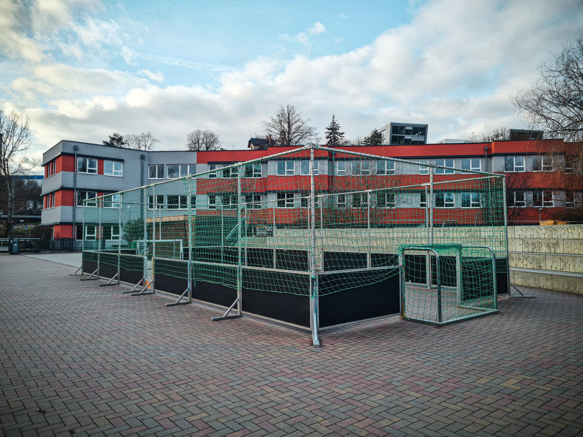 Nach vielen Monaten des Wartens wurde am 1. Dezember die renovierte Streetsoccer-Anlage im Paradies wieder aufgebaut. Unser 4–köpfiges Hausmeisterteam hatte die ramponierte Anlage in vielen, vielen Arbeitsstunden sorgfältig aufgebaut: Unter anderem mussten die Profile gewechselt, die Tore neu geschweißt und die Banden komplett erneuert werden. Das Holz dafür wurde übrigens aus der Bühne der Aula recycelt.