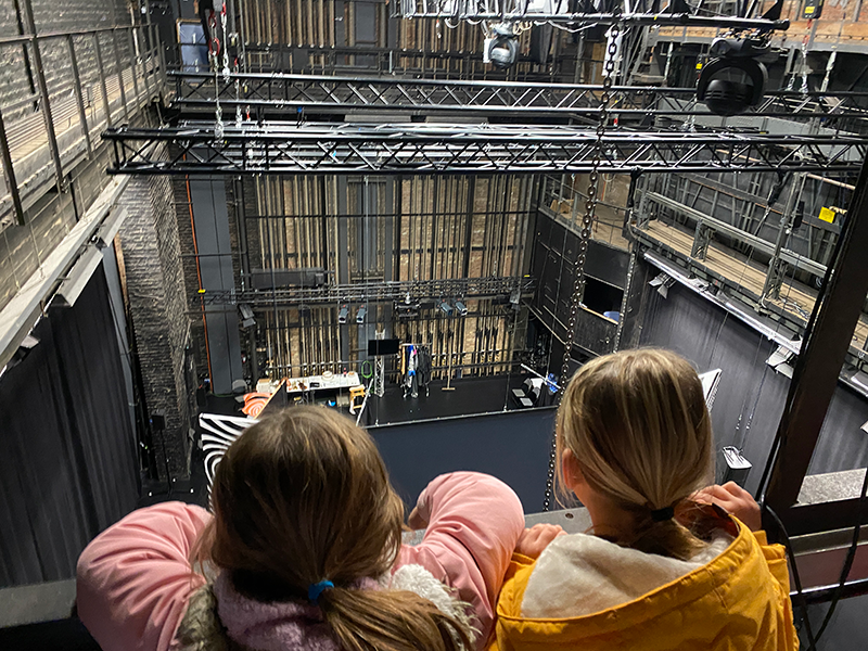 Als die Schüler*innen nach diesem Besuch schon vertraut waren mit einzelnen Dialogen und Szenen des Stücks, dürften sie am 25.11. dann selbst ins Theaterhaus kommen. Dort bekamen sie eine Führung durch die Probe- und Requisitenräume, die Haupt- und Unterbühne sowie durch die Werkstatt und durften anschließend live bei den Proben dabei sein. Sie konnten u.a. erleben, wie Darstellungsideen, die sie beim Besuch der Theaterhaus-Gäste in der Stammgruppe besprochen hatten, dann auf der Bühne umgesetzt werden. Dieser Einblick kam bei den Achaten total gut an, sehr lustig und unterhaltsam fanden sie die Szenen bisher.