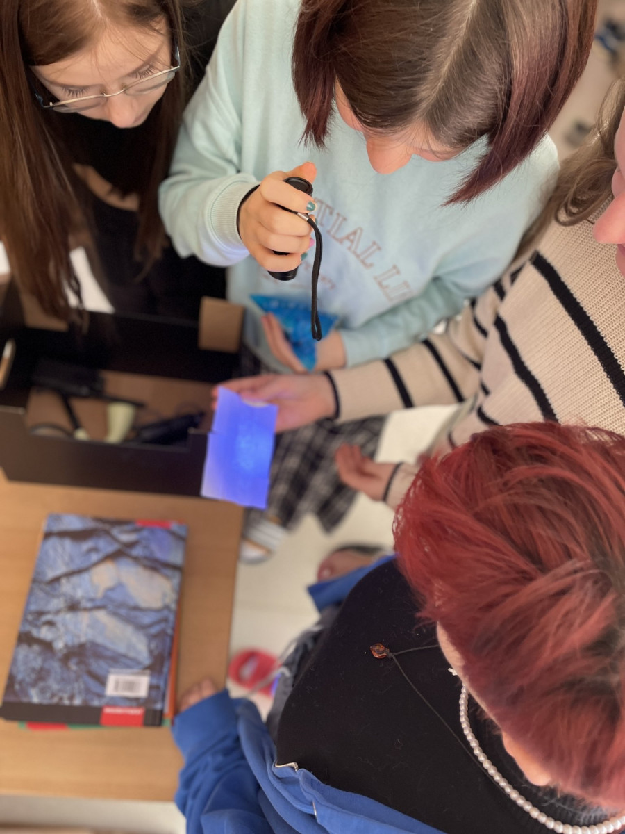 Agentenhinweise, an einer Tafel angepinnt, halfen den Teams dabei, in den nächsten Stunden alle Themen zu bearbeiten, die Dokumente zu sichten und Codes zu sammeln. Dabei hielt jedes Thema seine eigenen Herausforderungen und analoge sowie digitale Tools bereit: Beim Thema »Ruhrkrise« etwa, galt es einen QR-Code zu vervollständigen, der zu weiteren Hinweisen führte. Beim Thema Weltwirtschaftskrise kam ein UV-Licht zum Einsatz, das den gesuchten Code offenbarte, für das Thema Hitlerputsch hatten die beiden Lehrerinnen im Vorfeld ein fiktives Kneipengespräch zweier älterer Damen aufgenommen, mit dem die Schüler*innen durch genaues Zuhören das Rätsel lösen mussten, beim Thema Verfassung mussten sich die Teams durch eine non-lineare Geschichte klicken und ihr Wissen testen usw.