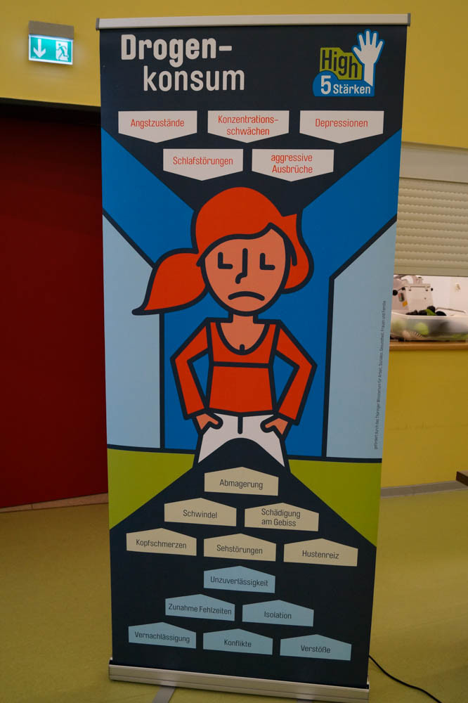 Von Januar bis März 2022 finden in den Stammgruppen V bis VIII Suchtprävention-Projekttage statt. Die vier Stammgruppen bekommen jeweils von unseren Schulsozialarbeiter*innen an drei Terminen einen umfassenden Einblick in das Thema „Sucht“. Wir sprechen darüber, warum Menschen abhängig werden können, welche möglichen Suchtwege entstehen können, wovon welche Gefahr für den Körper und die Psyche ausgeht. Die Schüler*innen be- und erarbeiten z.B. in Stationenarbeit Fallbeispiele und mögliche Handlungsmöglichkeiten, um sich einerseits selbst zu schützen und andere bestenfalls zu unterstützen. „Wichtig dabei ist, das Thema den Schüler*innen erlebbar zu machen, ihnen auf Augenhöhe zu begegnen und sie in ihrer Lebenswelt abzuholen”, so Jessica-Schoder-Liebig. „Wir können damit haltgebende Anker in den Köpfen der Jugendlichen setzen“, ergänzt Kollege Oliver Stiebritz die Mission. Damit das gelingt, ist genaues Zuhören und offen auf die Fragen der Schüler*innen zu antworten wichtig.