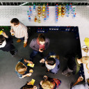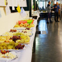 Nach diesen intensiven ersten Stunden konnten wir uns bei einem reichhaltigen Buffet, das die Schülerfirma der UniverSaale bravourös auf die Beine gestellt hatte, stärken. Hier gab es reichlich Gelegenheit für das, was diesen Tag, neben dem fachlichen Input, besonders wertvoll machte: das Kennenlernen über Einrichtungsgrenzen hinweg und den unkomplizierten Austausch untereinander. Der Nachmittag bot die Möglichkeit zur fachlichen Vertiefung bzw. zum praktischen Ausprobieren von Inklusion. Insgesamt werden die allermeisten mit kreisenden Gedanken, neuen Ideen oder Erkenntnissen, wieder erinnerten Werten, schönen Stunden des Miteinanders, vielen neuen Gesichtern im Speicher und einem gut gefüllten QuerWege-Bewusstsein nach Hause gegangen sein.