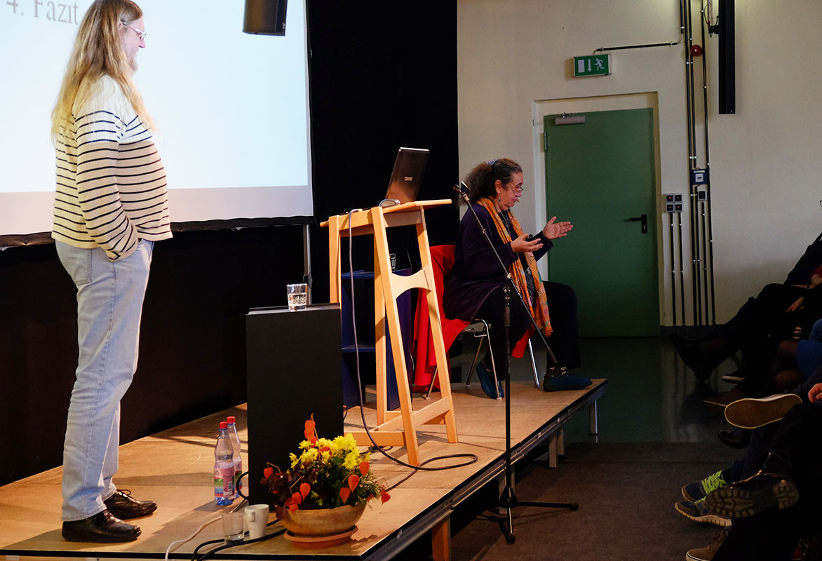 Auch Andreas Hinz und Ines Boban, die als Redner folgten, sind prominente Kritiker des deutschen Schulsystems. Sie näherten sich in ihrem Vortrag auf akademische Weise dem Thema und berichteten von ihren Untersuchungen und Erkenntnissen, die sie an Schulen im In- und Ausland gesammelt hatten. Sie kritisierten, dass Bildung immer mehr ökonomischen Zwängen unterliegt und zeigten gesellschaftliche Hürden auf, die flächendeckende Inklusion (noch) verhindern. Sie sprachen sich gegen Systemkonformität und Angepasstheit aus und für einen individuelleren Blick auf alle Schüler_innen, für mehr Gerechtigkeit und gegen unsinnige Leistungsvergleiche. Viele Kolleg_innen dürften darin eine Bestätigung für die eigene Arbeit gefunden haben. Schön wäre es deshalb gewesen, wenn Andreas Hinz und Ines Boban das Publikum voller Inklusions-Experten noch besser abgeholt bzw. unseren Erfahrungsschatz und die jahrelange Pionierarbeit unserer Einrichtungen einbezogen hätten.