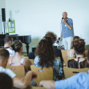 Eröffnet wurde der Nachmittag mit einem Festakt, bei dem verschiedene Menschen rückblickend Danksagungen und zukunftsgewandte Worte an die vielen Besucher*innen richteten. Schuldirektor Wolfram Böhme erinnerte beispielsweise daran, wieviel Mut auf Seiten der Eltern, Pädagog*innen, des QuerWege e.V.s wie auch Vertreter*innen der Stadt nötig war, um die UniverSaale zu gründen. Er zeigte aber auch auf, dass in der jetzigen politischen Situation die Stimmen derer, die sich für gemeinsames Leben und Lernen ALLER Kinder einsetzen, wieder lauter werden müssen. Zwei ehemalige Schüler*innen hielten eine Laudatio für die UniverSaale und standen beispielhaft dafür, welch unterschiedliche Persönlichkeiten sich hier entfalten und reifen können.