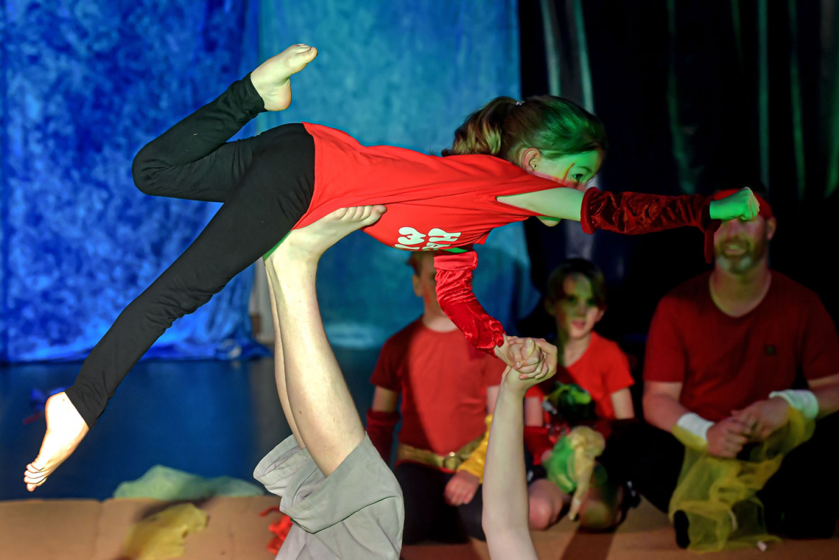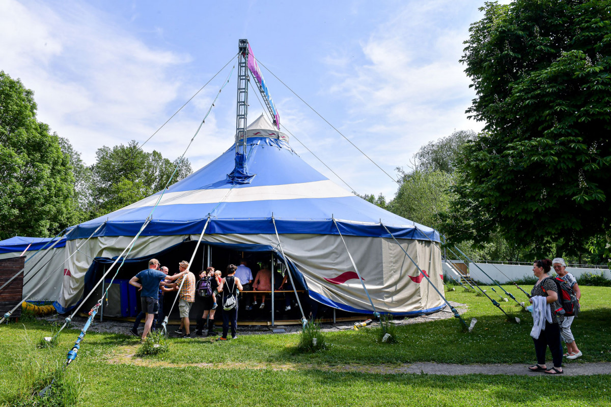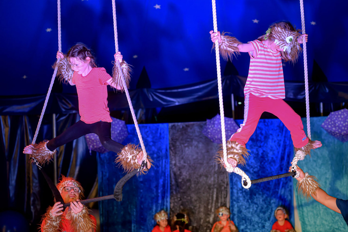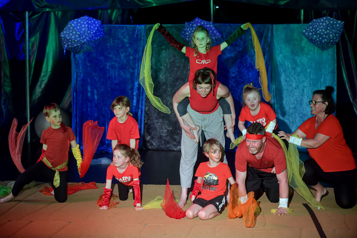 Die 26 Kinder der drei Kitas trafen sich jeden Tag halb 9 um gemeinsam zu frühstücken. Nach einer Aufwärmung würde in Gruppen geprobt, angeleitet durch MoMoLo-Zirkuspädagog*innen, wobei jeden Tag große Fortschritte gemacht wurden. Am Freitag war der Höhepunkt der Woche. Nach der Generalprobe am Vormittag, zu der alle anderen Kinder der drei Kitas eingeladen waren, stand um 15 Uhr die große Premiere an – eine großartige Vorstellung, die Eltern und Geschwister in Staunen versetzte. Mit Lichteffekten, Kostümen, Musik und in der tollen Kulisse des MoMoLo-Zirkuszeltes zeigen die stolzen Kinder, was sie alles gelernt hatten.