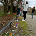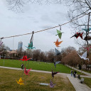 Seit Mittwoch kreisen Origami-Kraniche im Baumsaal im Paradies-Park. Genau 434 Stück sind es, überwiegend gefaltet von Isa Schmiedgen und Schüler*innen der UniverSaale Jena. Hinter diesem Farbtupfer steckt eine wichtige Botschaft.