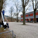 Gemeinsam mit Pfarrerin Maria Krieg und Gemeindepädagogin Iris Beyersdorff hat sie in verschieden Kitas, Pflegezentren und diakonischen Einrichtungen mit Kindern, Jugendlichen und Senioren Kraniche gefaltet und diese während der Fastenzeit an verschiedenen Stationen in Jena mit Ballons in die Luft geschickt. Die 1000 Kraniche waren also schon längst gefaltet, als Isa Schmiedgen auch die UniverSaale ansprach, ob die Schüler*innen nicht Interesse hätten, über ihre Gedanken, Sorgen und Zukunftswünsche zu sprechen und dabei die kleinen Friedensymbole aus Papier herzustellen. Genau 269 Kraniche wurden in der Papierwerkstatt der SG I und in den Pausen von anderen Schüler*innen innerhalb von drei Tagen gefaltet. Diese wurden zusammen mit den bereits gefalteten 165 weiteren Kranichen am Mittwoch, den 20.3. an Schnüren in den Baumsaal gehängt, damit an diesem zentralen Ort möglichst viele Besucher*innen der Rasenmühle von dem Projekt und der Idee dahinter erfahren.