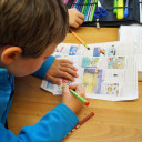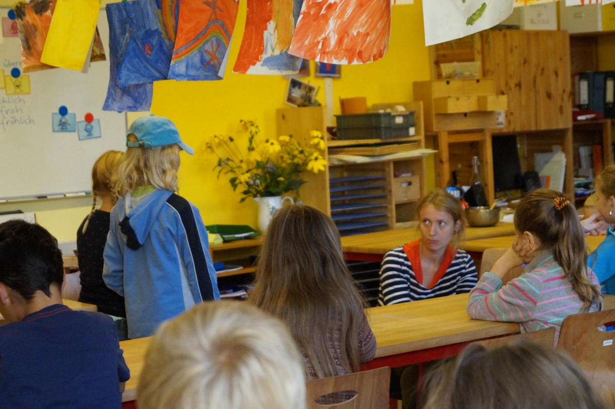 Während bei den Feuersteinen die Kugel durch die Regenrinne flitzt, werden bei den Tigeraugen gerade die Schülersprecherwahlen vorbereitet. Für die Kinder der Tigeraugen-Stammgruppe sind dabei unter anderem folgende Regeln wichtig: die Erstklässler sollen sich wohl fühlen – wir wollen ehrlich sein – andere Meinungen ernst nehmen – auf andere Rücksicht nehmen und für andere da sein. Die gewählten Schülersprecher_innen wollen dabei helfen, das alltäglich zu leben. Wie sie das tun können, lernen sie von einer Pädagogin mit einer Mediatorenausbildung. Bei den Kieselsteinen entdecken die Kinder die Vielfalt im Anderssein. Wie man das Anderssein wertschätzend einbringen kann, führen die Kinder in erdachten Geschichten als kleines Theaterstück vor. Viele Gesichter bekommt das Anderssein mit einem selbstgebastelten Sockentier.