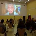 Im Anschluss an den “Klang der Stolpersteine” fand um 20 Uhr ein digitales Zeitzeugengespräch mit Éva Fahidi-Pusztai, Überlebende von Auschwitz und des KZ-Außenlagers Münchmühle, statt. Während Frau Fahidi-Pusztai in Budapest vor dem Rechner saß, wurde das Bild nach Erfurt übertragen, wo im Studio der Moderator Martin Kranz, Intendant der Achava Festspiele Thüringen, mit Gästen saß, und gleichzeitig nach Jena, wo von zwei verschiedenen Orten aus Schüler*innen und Pädagog*innen der UniverSaale und des Christlichen Gymnasiums live zugeschaltet waren. Das ungewohnte digitale-interaktive Format funktionierte sehr gut auf die Distanz, denn die 95–jährige Éva Fahidi-Pusztai erzählte sehr eindrücklich, fesselnd und schonungslos von ihren Erlebnissen: Von ihrer glückliche Kindheit in Ungarn Ende der 20er Jahre, von den zunehmenden Repressionen gegen Juden in ihrer Stadt, vom Einmarsch der Wehrmacht 1944 “an einem schönen Frühlingssonntag”, von der bedrückenden Zeit im Ghetto, vom schrecklichen Ende ihrer Familie und ihrem eigenen Überlebenskampf als Zwangsarbeiterin in Deutschland. Ihre Eindrücke schilderte sie sehr klar und detailliert und umso emotionaler war es, ihr zu zu hören. Sie richtete sich oft direkt an die Schüler*innen, denn ihr liegt sehr viel daran, die Erinnerung in der jungen Generation wach zu halten. Gleichzeitig vermittelte sie, das Leben als ein Geschenk zu sehen, es euphorisch zu bejahen.