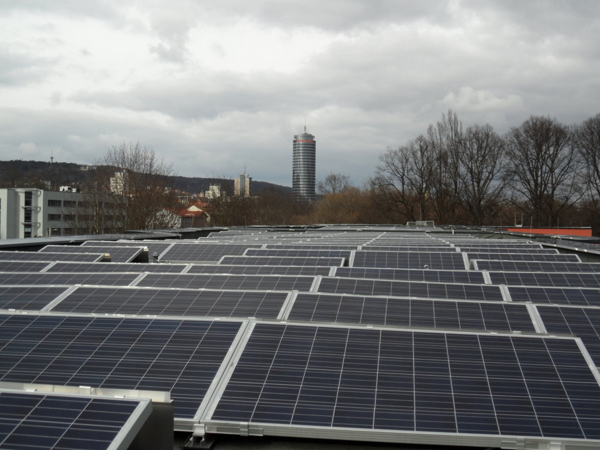 Photovoltaikanlage auf dem Dach der UniverSaale und SteinMalEins am 3. März in Betrieb genommen