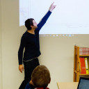 Nach kurzer Zeit bewältigte Nao einen Hindernissparcour oder unterhielt sich in kleinen Dialogen mit den Schüler_innen. Wozu das kleine Technikwunder noch alles fähig ist, zeigte Jean-Philipp, in dem er Nao Taiji-Übungen machen oder das Brettspiel „Invers“ spielen ließ.