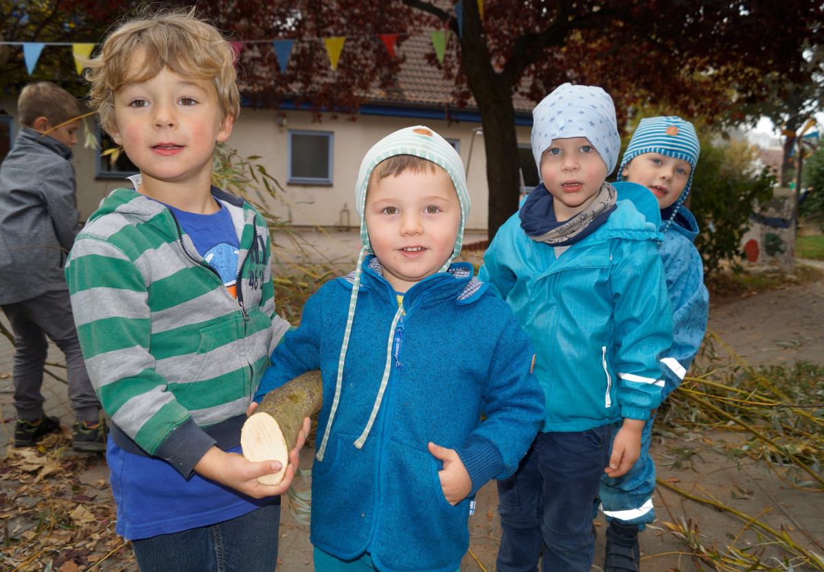 Im Gelände des Schwabenhauses tummelten sich heute große und kleine Leute. Die Großen waren mit richtig lauten Werkzeugen bepackt, um die Bäume im Außengelände zu beschneiden. Die kleinen, die Kinder der Kita Schwabenhaus, waren davon schwer begeistert und konnten von den lauten Motorsägen und dem Baumklettern gar nicht genug bekommen. Sichtlich beeindruckt waren die Arbeiter der Firma „ Der Baummarder“ von den fleißigen Kindern, die voller Freude die vielen Äste und Zweige zum Ausgang trugen. So viel Hilfe wünschten sie sich jeden Tag bei ihrem Tun.