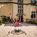 Im Mai wurde unsere tolle, große Nestschaukel, die wir dank des Preisgeldes vom Kinderinklusionspreis kaufen konnten, offiziell eingeweiht. Diesen haben wir 2019 verliehen bekommen und gleichwohl die Schaukel schon länger die Pausen und Nachmittage unserer Schüler*innen bereichert, wollten es sich die Personen, die den Kinderinklusionspreis ins Leben gerufen und das Preisgeld gestiftet haben, nicht nehmen lassen, die Schaukel in Aktion zu sehen.