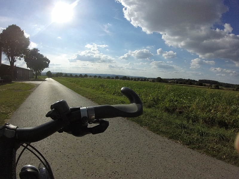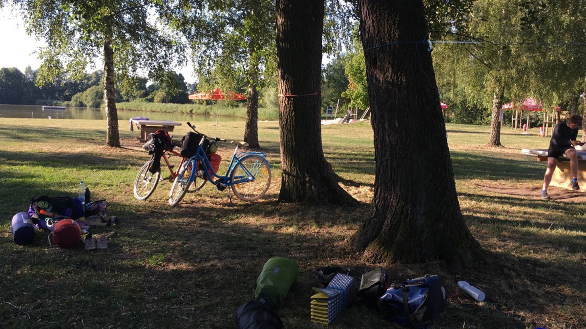 Dann endlich der Start in Jena, erste Etappe Mödlareuth. Ein Dorf mit 40 Einwohnern, das zu einem Teil mit der Teilung zu einem Bundesland in Bayern mit 16 Einwohnern wurde und zum anderen Teil im Bundesland Thüringen mit 24 Einwohnern lag. 41 Jahre lang verlief die innerdeutsche Grenze mitten durch das Dorf. Erste Eindrücke waren gesammelt, Interviews geführt. Auf zur nächsten Etappe. Schnell wurde klar, dass es in den drei Wochen nicht nur darum ging Strecke zu machen, sondern auch darum, sich mit sich selbst auseinanderzusetzen. Unterwegs sein bedeutet Erfahrungen sammeln, die Bequemzone verlassen, körperliche Anstrengung, jede Nacht in einem anderen Ort campen und Heimweh. Es ging nicht allen so, aber auch diese Gefühle beeinflussten die Dynamik im Team. Nach kurzer Zeit mussten sie das Tempo aus gesundheitlichen Gründen anpassen. Noah erkrankte und musste die Reise abbrechen. So schnell veränderten sich abermals die Bedingungen. Unterwegs wurde allen klar, dass jeder für sich seine eigene Herausforderung auf Reisen lebt. Jeder definierte nicht nur einmal sein Ziel. Für Elisa war es Durchhalten, für andere war die Gemeinsamkeit wichtig. „Wir finden uns als Gruppe, fahren gemeinsam und haben eine gute Zeit beim Fahrrad fahren“, erzählt Hannah. Leo war die schulische Bewertung ebenso wichtig, mit dem Blick auf die kommende PA-Arbeit sollte ein Filmdokument entstehen.