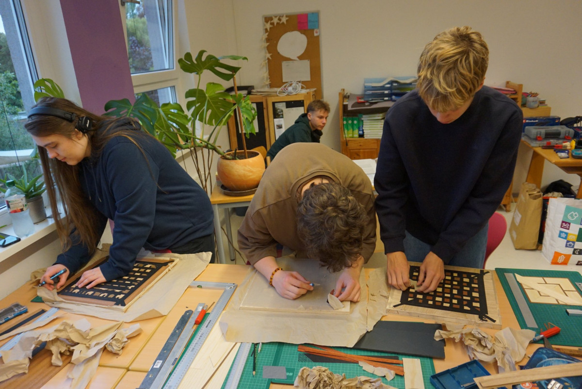 Aus dem Coronahobby von Herrn Beer wurde ein Kurs: In dem Workshop werden Schachbretter und in diesem Jahr auch Schachfiguren gebaut. Von Grund an, aus unterschiedlichen Holzarten. Bis so ein Schachbrett fertig ist, braucht es seine Zeit. Das macht den Teilnehmer*innen jedoch nichts aus, sie arbeiten jeden Tag motiviert daran weiter. Bis Freitag werden mehrere Schachbretter und einige Schachfiguren entstehen. (fe)