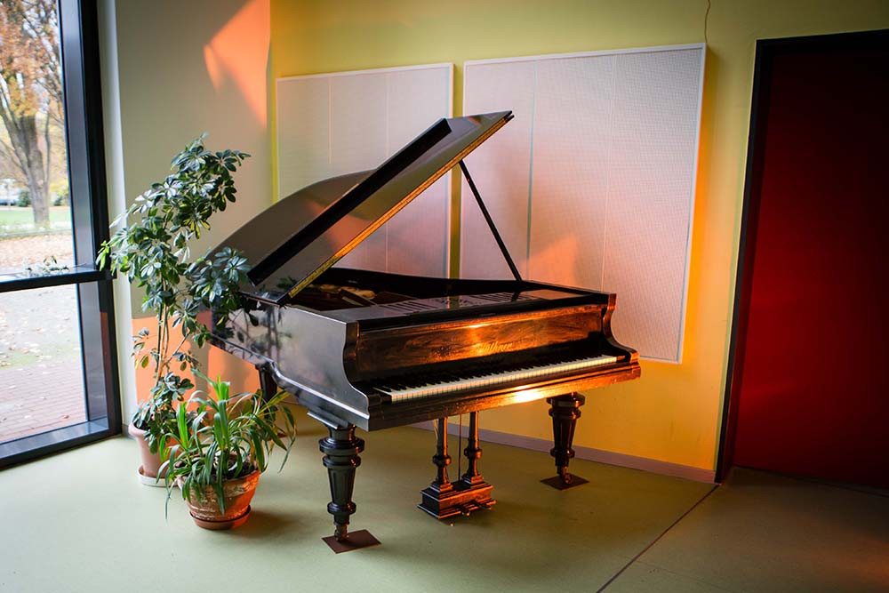 Die Aula der UniverSaale ziert seit kurzem eine Rarität – ein Flügel der Firma Blüthner aus Leipzig.