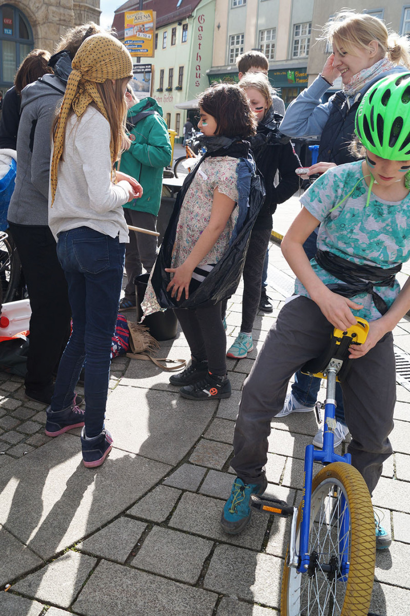 Gestern nachmittag zogen Schüler_innen der UniverSaale mit Trommeln und raselnden Dosen auf den Holzmarkt, um mit einem Flashmob auf die Saaleputz-Aktion an diesem Samstag aufmerksam zu machen. Ihr Ziel, mit einem großen Transparent und ordentlich Krach die Aufmerksamkeit auf sich zu ziehen, ist dabei aufgegangen. Nach dem “Gebrüll” wurden Flyer an die Café-Besucher_innen und Passant_innen verteilt. An diesem Samstag trifft sich die Gruppe um 10 Uhr an der Camsdorfer-Brücke, um den Saaleabschnitt entlang des Paradies-Parks vom Müll zu befreien. Da stündlich ca. 300 Tonnen Müll über die Flüsse ins Meer gelangen, an dem viele Tiere verenden, trägt diese Aktion einen kleinen Teil dazu bei, das Sterben zu verringern.
