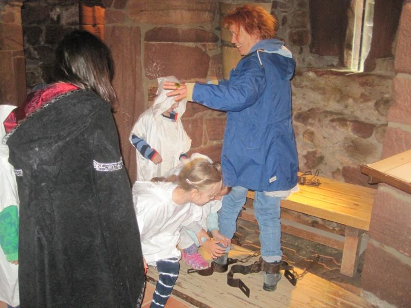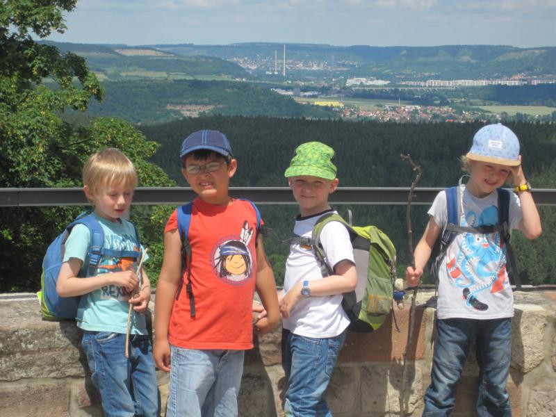 Im Juni ging es zur Geisterwanderung auf der Leuchtenburg als letzte große Wanderung für die diesjährigen Wackelzähne. Da mussteA schon mal über 6 Kilometer gewandert werden! Aber bei der Hälfte des Weges gab es einen Schatz zu suchen und der war auf der Leutenburg in einer Kiste versteckt. Natürlich duften die Kinder auch mal ihre Erzieherin in Fußketten legen, doch schnell wurde sie wieder von ihnen befreit. Da an diesem Tag Deutschland spielte waren die Wünsche auf den Porzellantellern fast alle für einen Sieg. Und der ging in Erfüllung.