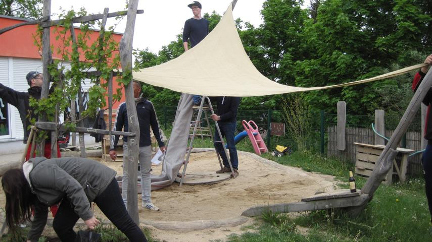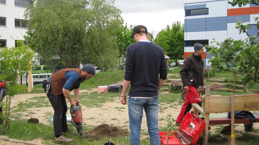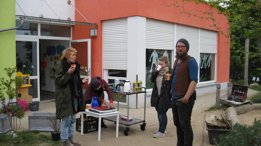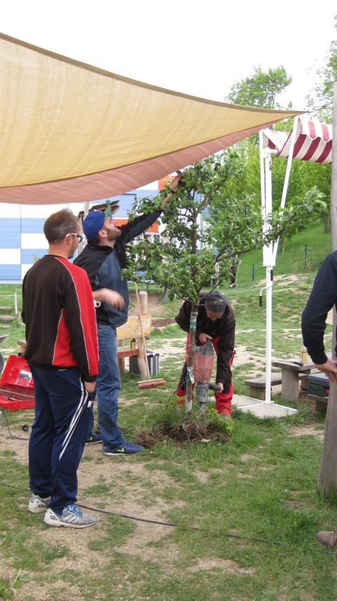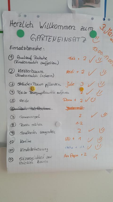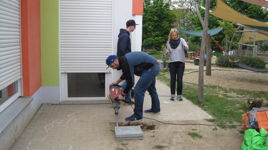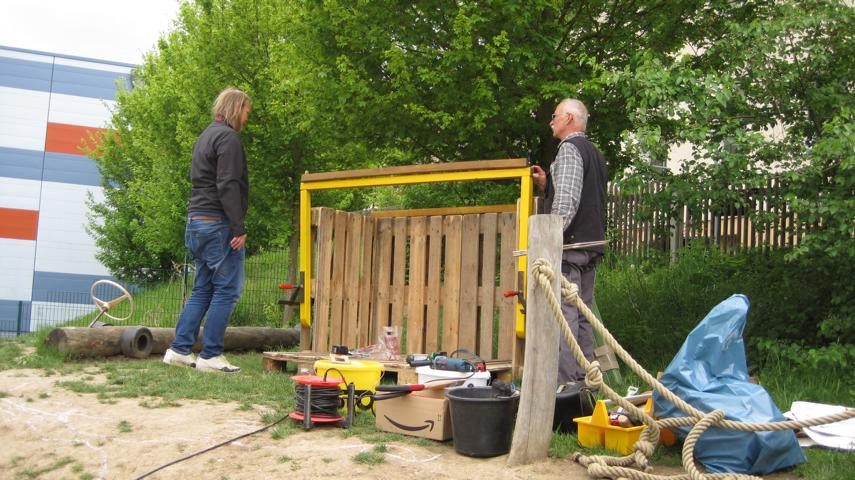 Eigentlich hätte es am 3. Mai 2019 regnen sollen. Für den Freitagnachmittag war ein Garteneinsatz mit den Eltern geplant. Wir wollten Rindenmulch auffüllen, Sträucher und Bäume pflanzen, Sandkasten umgraben, Rückzugsmöglichkeiten aus Weiden schaffen und aus Paletten im Garten neue Sitzgelegenheiten für die Kinder bauen. Es war großartig: Eltern und Großeltern strömten mit Werkzeug, Presslufthammer, Kaffee und Erdbeertorte in den Kindergarten, schwuppdiwupp waren die Sträucher gepflanzt, neue Komposthaufen angelegt. Die Kinder wurden betreut, mit Radler wurde die Laune oben gehalten, am Ende war es fast schade, dass alles vorbei war. Danke an alle fleißigen Helfer_innen. Von Regen keine Spur …