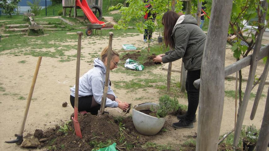 Eigentlich hätte es regnen sollen – Garteneinsatz mit Eltern!