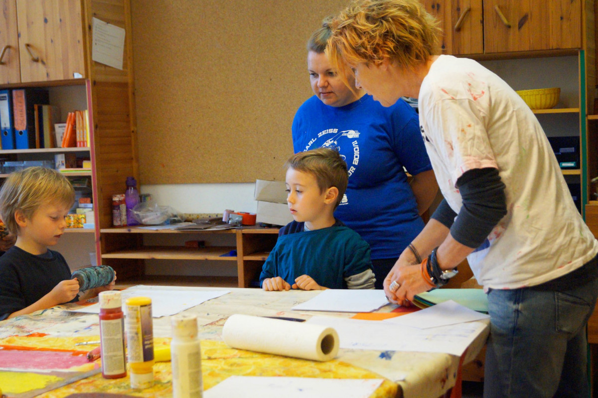 Mehr zu unserer Wackelzahn_Kunstwoche: Gruppe der Malerei, Gruppe des kreativen Kochens, Gruppe in der Holzwerkstatt