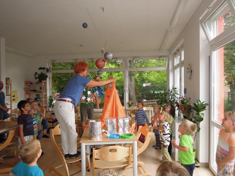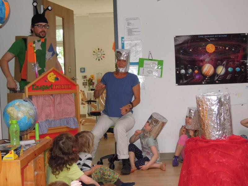 “Braucht alles einen Namen?” – mit dieser Frage setzten sich unsere Kinder in den vergangenen Wochen auseinander. Ausgehend vom eigenen Namen, über die Bezeichnung von Tieren, Städten und Ländern kamen wir ins Weltall. Sehr lange interessierten sich die Kinder für die Planeten, woraus am Ende unsere neuen Gruppennamen entstanden. So sind die Kinder des Kleinkindbereiches nun die “Sonnengruppe”, die Mittleren die Marsgruppe und unsere großen Kinder die Jupitergruppe. Zur Namensgebung gab es eine tolle Party!