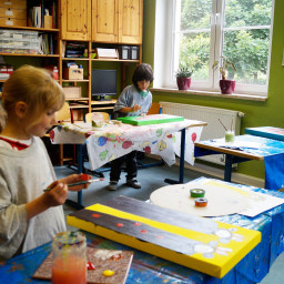Einblick in die Gruppe der Malerei der einwöchigen Wackelzahn_Kunstwoche