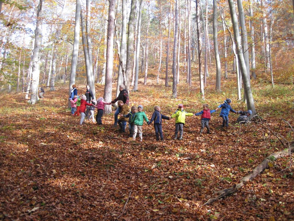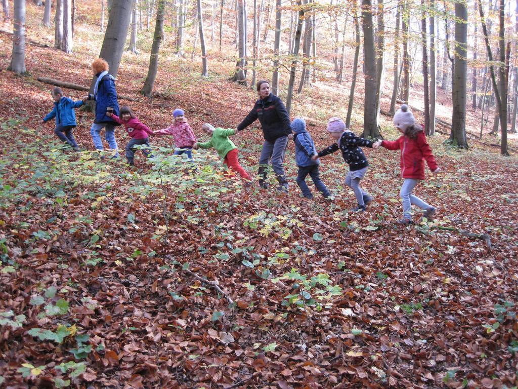 Der Herbst war in unserer Kita von dem Projekt „Was müssen das für Bäume sein..“ geprägt. Neben dem Apfelbaum, der Kastanie oder dem Ahornbaum konnten die Kinder an einem Tag im Oktober den weiten Buchenwald im Rautal erleben. Es wurden u.a. große Buchenbäume durch unsere Hände „verbunden“, unterschiedliche Buchenblätter aufgeklebt und natürlich Bucheckern geknabbert. Solch einen Tag mit dem Naturparadies Jena buchen wir unbedingt wieder.