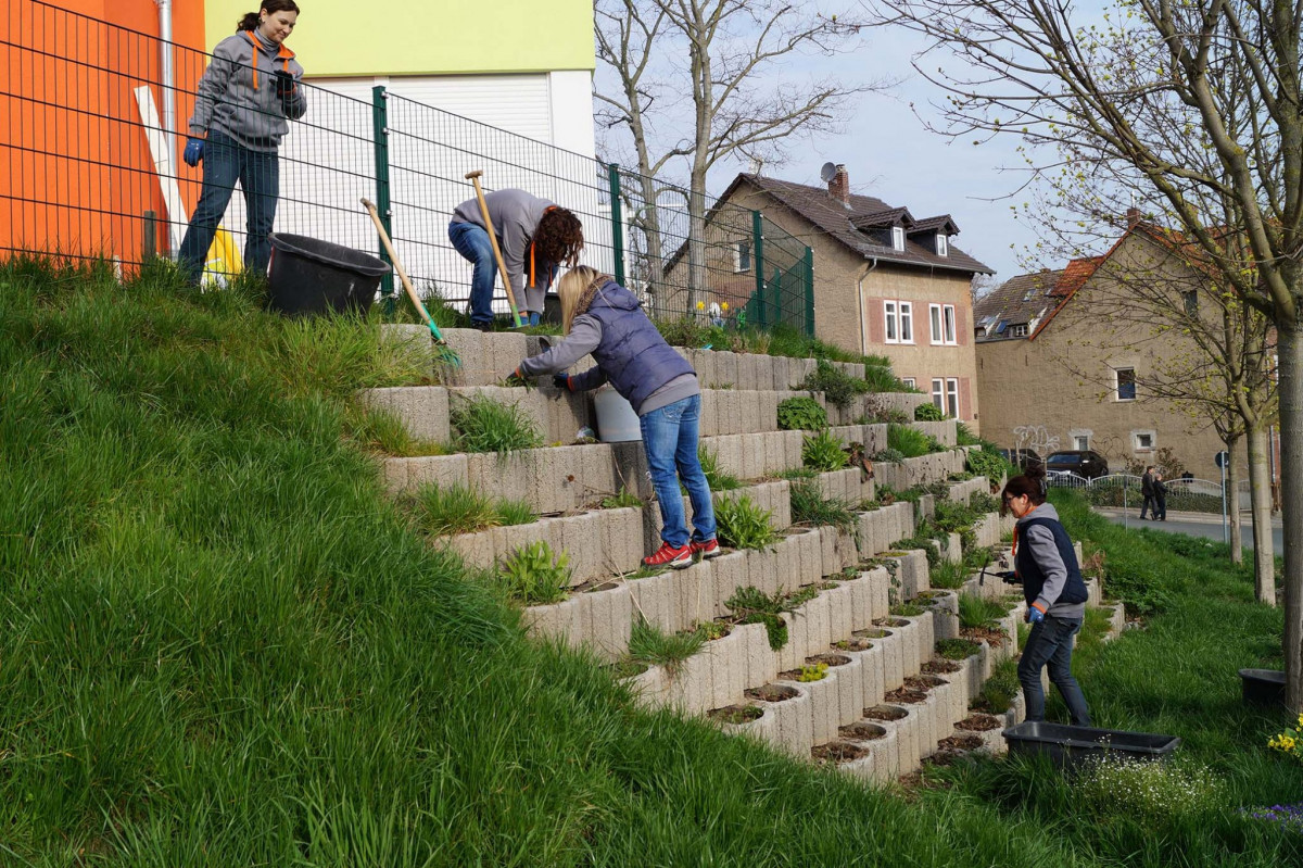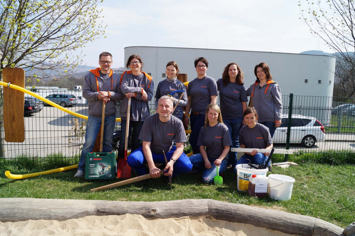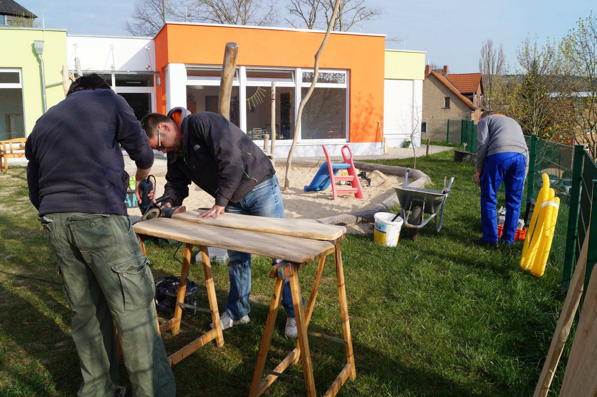 Das Team des Personalvermittlers Orizon rückte am 14. April mit viel Tatendrang und Werkzeug bewaffnet an, um die Kita Pi mal Daumen bei der Verschönerung des Gartenbereichs zu unterstützen. In vier Stunden entstanden ein neuer Außentisch, eine kreative Murmelbahn aus Holz und Plastikröhren und der Rasen wurde begradigt. Die Baumschule Bremsnitz spendete eine große Anzahl Blumen, wodurch auch die Pflanzkübel an der Außenmauer begrünt werden konnten. Initiiert hat das Projekt die Bürgerstiftung Jena. Vielen Dank. Im Fokus stand der Wunsch, gemeinsam als Team Gutes zu tun. Der Einsatz in der Kita Pi mal Daumen hat allen sehr viel Spaß gemacht und wir hoffen auf weitere gemeinsame Aktionen.