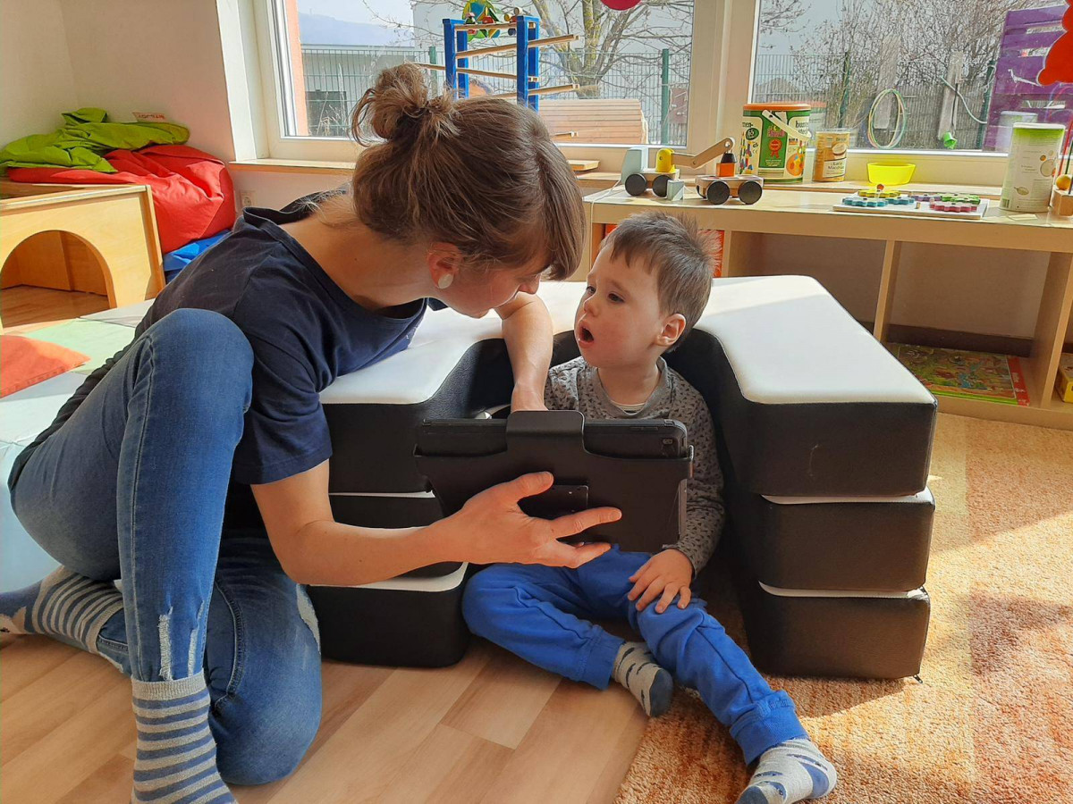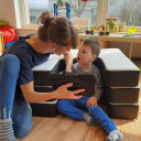 Wir konnten u.a. ein multifunktionales Sitzkissen anschaffen, dass uns eine große Hilfe im Kitaalltag und seinen Therapien ist. Arne kann damit frei und ohne Unterstützung der Erzieher*innen stabil z.B. bei Morgenkreisen sitzen und damit viel besser beim Singen und an Spielen teilhaben. Die Erzieher*innen haben damit auch selbst die Hände frei, um z.B. das Talk Pad für Arne zu halten.