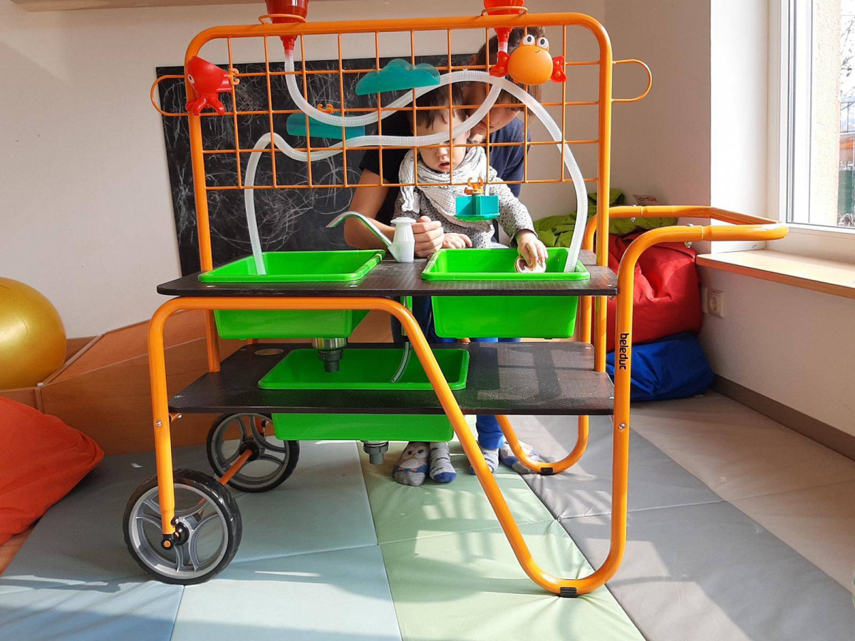 Für den Garten konnten wir einen Spieltisch anschaffen sowie eine Lauflernstange mit verschiedenen Spielelementen kaufen. Eine Hängematte mit Schaukelsystem wird aktuell noch bei uns aufgebaut. Diese wird ihm helfen, seine Selbstwahrnehmung zu verbessern und ihm Entspannung bieten.