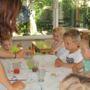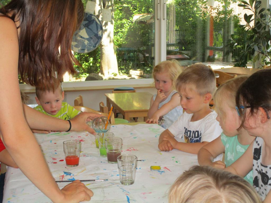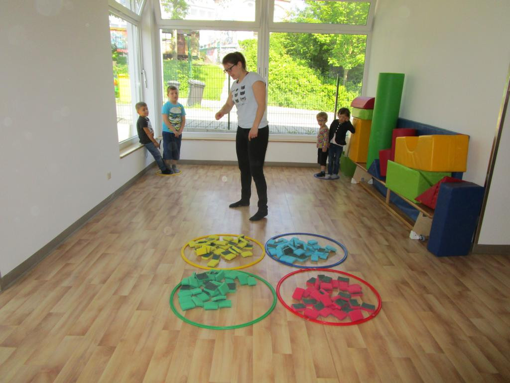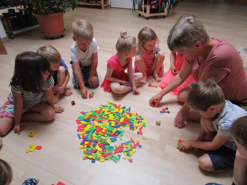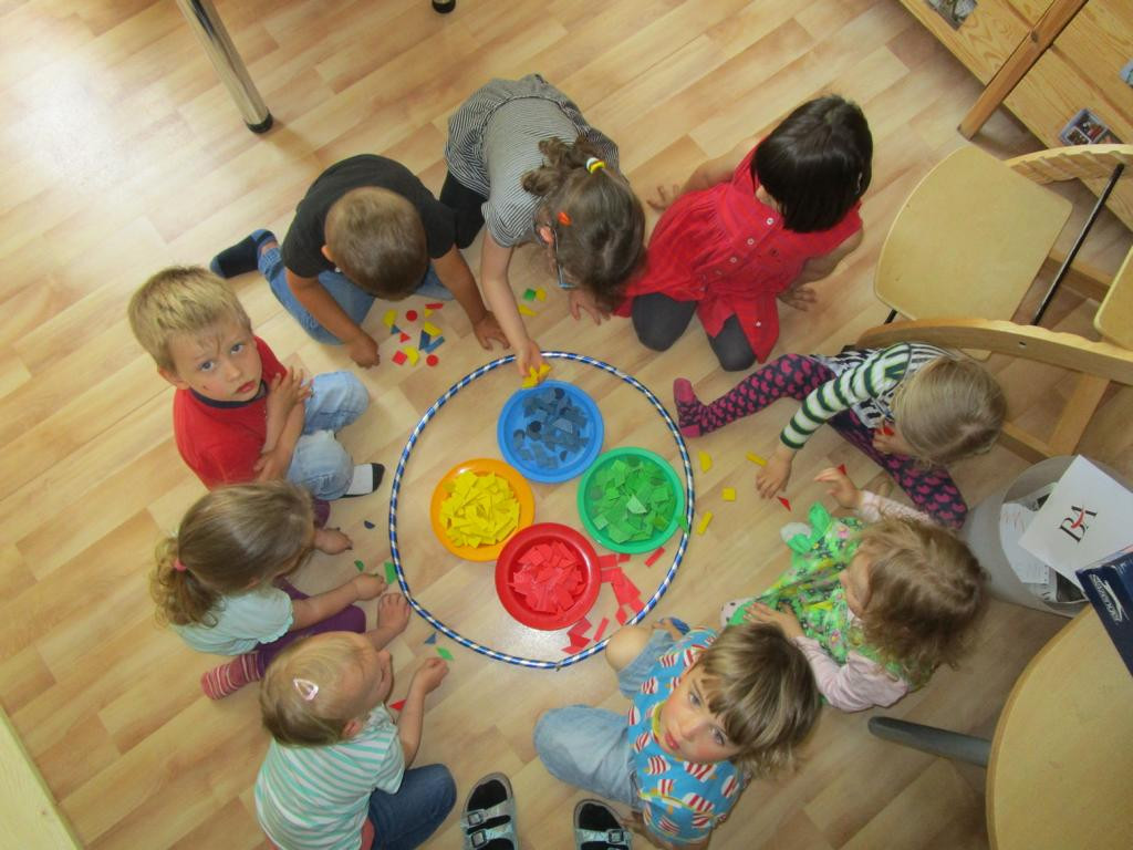Unter diesem Motto geht es im Sommer um Farben, Formen und Zahlen. Zu Beginn untersuchten Kinder und Erzieher_innen u.a. eine Bienenwabe, bauten aus Mosaiksteinen verschiedene Objekte oder suchten Formen und Farben im Alltag, wie z.B. Formen von Häusern, Verkehrsschildern & Geschirr. Wir suchten Oberbegriffe für verschiedene Dinge und fanden heraus, dass viele Kinder in der Kita sind, aber jedes Kind ganz individuell ist. So sortierten wir uns nach Größe, Haarfarbe oder Augenfarbe. Nun stellten wir uns die Frage: Gibt es etwas, was man nicht sortieren kann? *