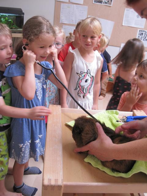 Viele Höhepunkte prägten den heißen Sommer in unserer Kita. Große Abkühlung verschafften uns Spaziergänge zur Saale im Paradies oder ein Besuch im Schleichersee. An manchen heißen Tagen experimentierten wir lieber im Haus oder spielten im Garten und beobachteten dabei die vielen Schnecken. Ein besonderer Höhepunkt war die tierärztliche Untersuchung unserer Meerschweinchen.
