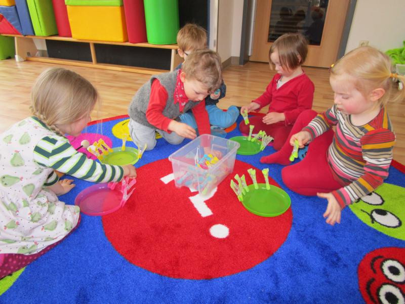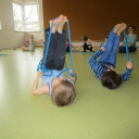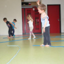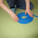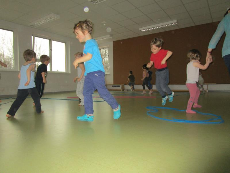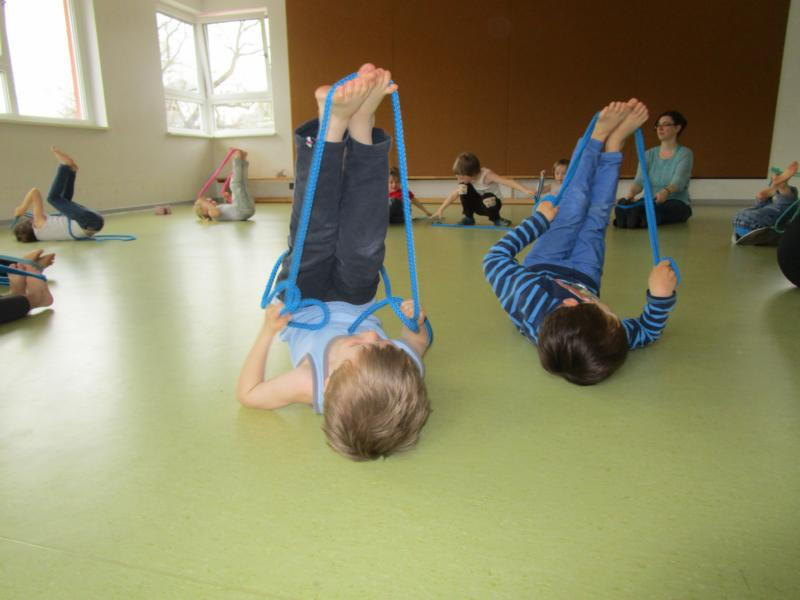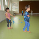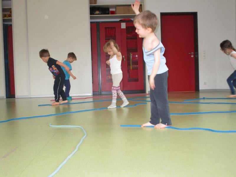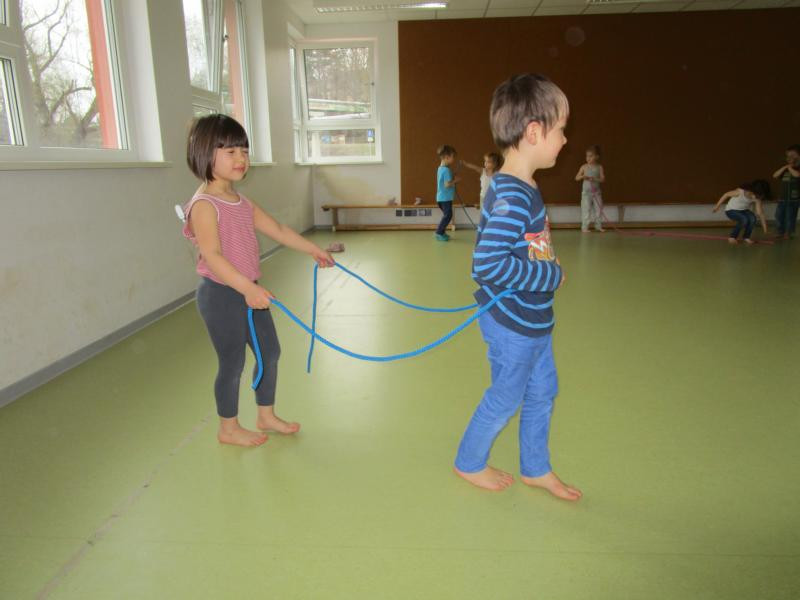 Seit Herbst kommt regelmäßig Ines, eine Sportstudentin, zu uns in die Kita und bringt verschiedenste Materialien für tolle Sportangebote mit. Dabei können die Kinder verschiedenste Alltagsmaterialien erproben, wie z.B. Klammern, Toilettenpapierrollen, bunte kleine Schwämme, Zeitung oder jede Menge Seile.
