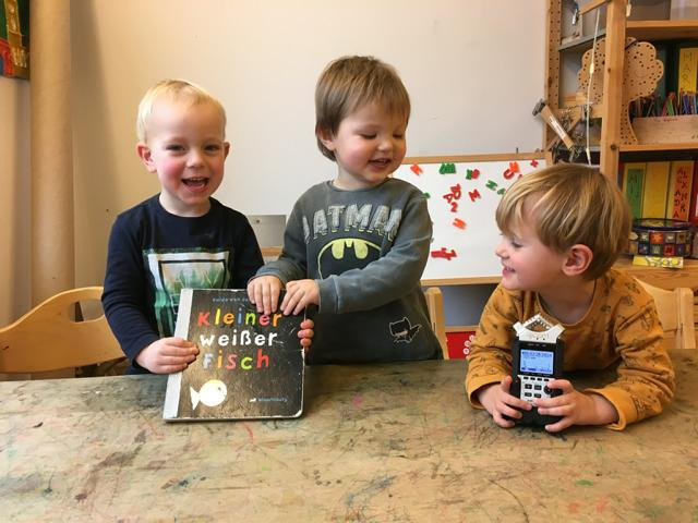 In Folge einer Weiterbildung bei der Thüringer Landesmedienanstalt wurde zusammen mit unseren Kleinsten ein Projekt erarbeitet. Als Vorlage diente das Buch „Der kleine weiße Fisch“. Mit den Kindern wurde der Text in ein Tonaufnahmegerät gesprochen und hinterher Bilder von den Tieren des Buches ausgemalt. Am Computer entstand daraus ein kleiner Film, in dem sich die Kinder selbst hören und ihre gemalten Bilder entdecken können.