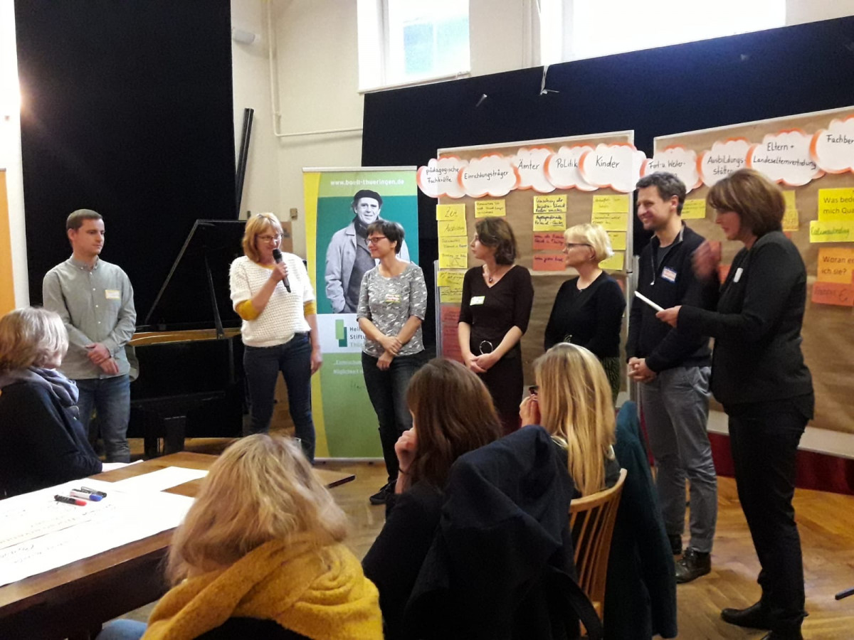 Die Veranstaltung des Fachforums zur Qualitätsentwicklung in den Kitas am 30.10. 2019 war gut besucht. Ca. 100 Personen aus den unterschiedlichen Bereichen sind der Einladung gefolgt und beteiligten sich an der Diskussion: Was bedeutet Qualität und woran erkenne ich sie? Die einzelnen Akteursgruppen tauschten sich untereinander aus, die wichtigsten Ergebnisse daraus wurde präsentiert und Steffen Richter (Parität Thüringen) fasste zusammen und stellte aktuelle Forderungen vor. Die feierliche Bündnisgründung ist der Beginn eines zukunftsorientierten Prozesses für Thüringer Kitas, für die Kolleg*innen und für gerechte Chancen für jedes Kind. Anke Protze, Vorstand des QuerWege e.V. bekräftigte neben den anderen Vertreter*innen der Bündnispartner die Wichtigkeit der ersten Jahre und die Bedingungen, die es braucht, damit eine hohe Qualität bei jedem Kind, bei jeder Familie und auch bei jeder pädagogischen Fachkraft ankommt. Mehr Informationen zur Fachdebatte, zum Bündnis und dazu, wie man Partner wird, hier: http://vernetzung-bildung.de/