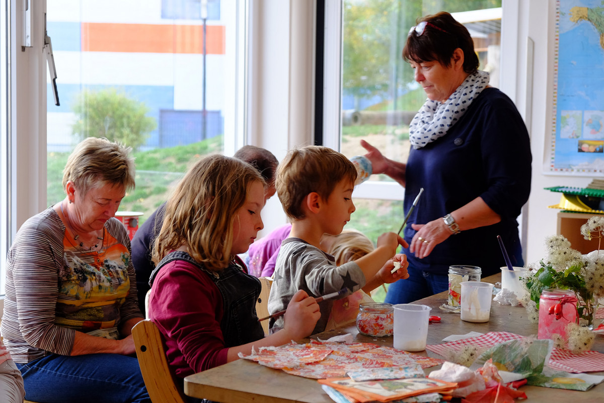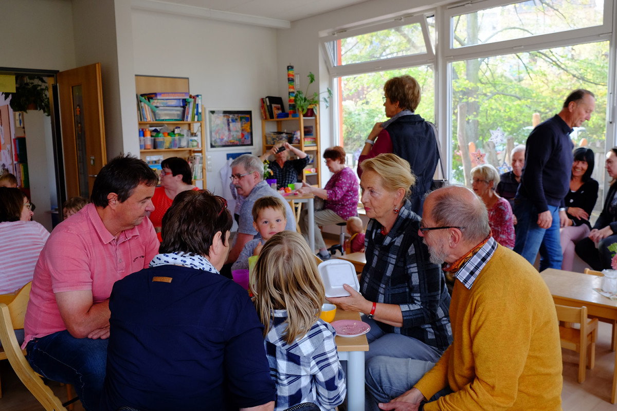 Nach Kaffee, Kuchen und anderen Leckereien konnten sich die Großeltern die Portfolio-Ordner ihrer Enkel ansehen, mit ihnen Basteln, durch die Räume streifen oder eine Fotoshow anschauen. Unsere Kinder waren ganz stolz, ihren Omas und Opas alles zu zeigen und viel zu schnell war dieser schöne Nachmittag schon rum.