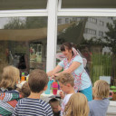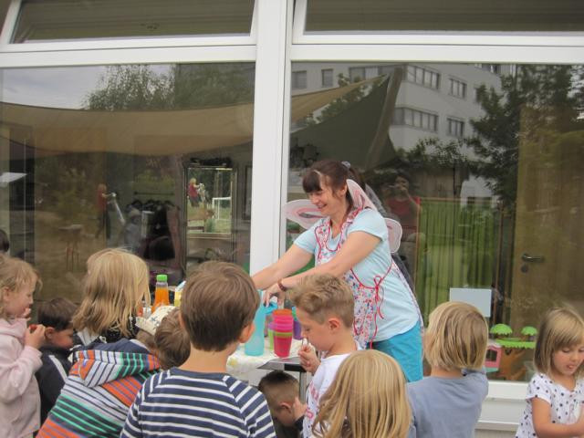 Nun ist es schon zur Tradition geworden – einmal jährlich feiern wir im Sommer ein großes Fest mit vielen interessanten und lustigen Aktionen für die Kinder. Nach dem Morgenkreis probierten die Kinder verschiedenste Geschicklichkeitsspiele aus, wie z.B. aus einfachen Eimern den höchstmöglichen Turm zu bauen. Faschingsähnliche Fotos entstanden durch unsere Fotowände – manchmal war es nicht einfach zu erraten, wer wohl dahinter steht. Und unsere „Küchenfee“ an diesem Tag stellte den Kindern viele Leckereien und besondere Getränke bereit.
