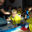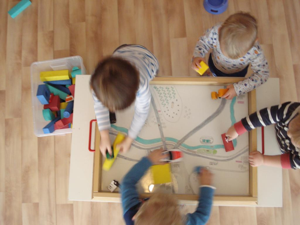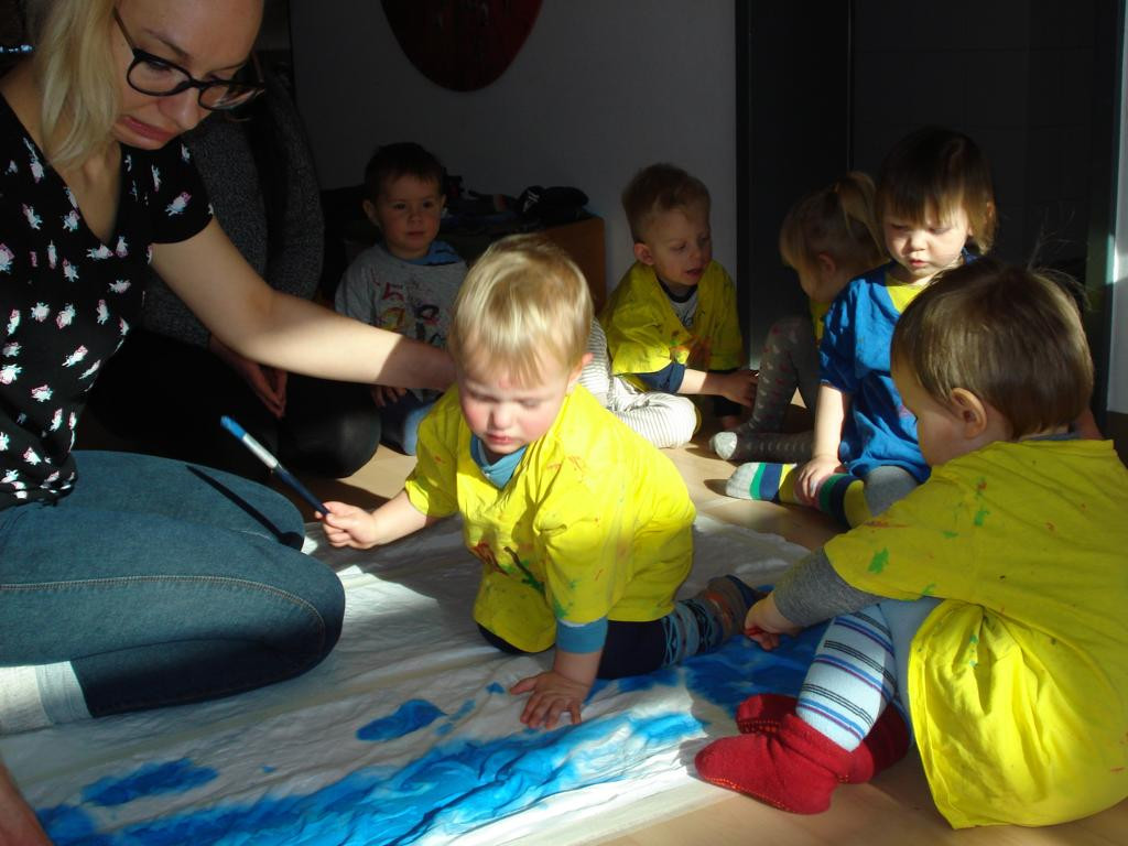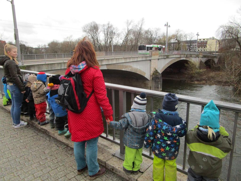 Auch die Kleinsten beschäftigen sich mit unserer Stadt. So haben wir das Jena-Lied kennengelernt und mit Bewegungen gestaltet. Ausflüge zur Saale gemacht und den großen Fluss bestaunt. Auf dem gemalten Stadtplan konnten die Kinder die einzelnen Punkte sehen und darauf auch spielerisch die Stadt erkunden. Mit den Farben der Stadt haben wir uns auch beschäftigt und eine Fahne in blau-gelb-weiß gemalt. Diese wird bald im Außengelände zu sehen sein.