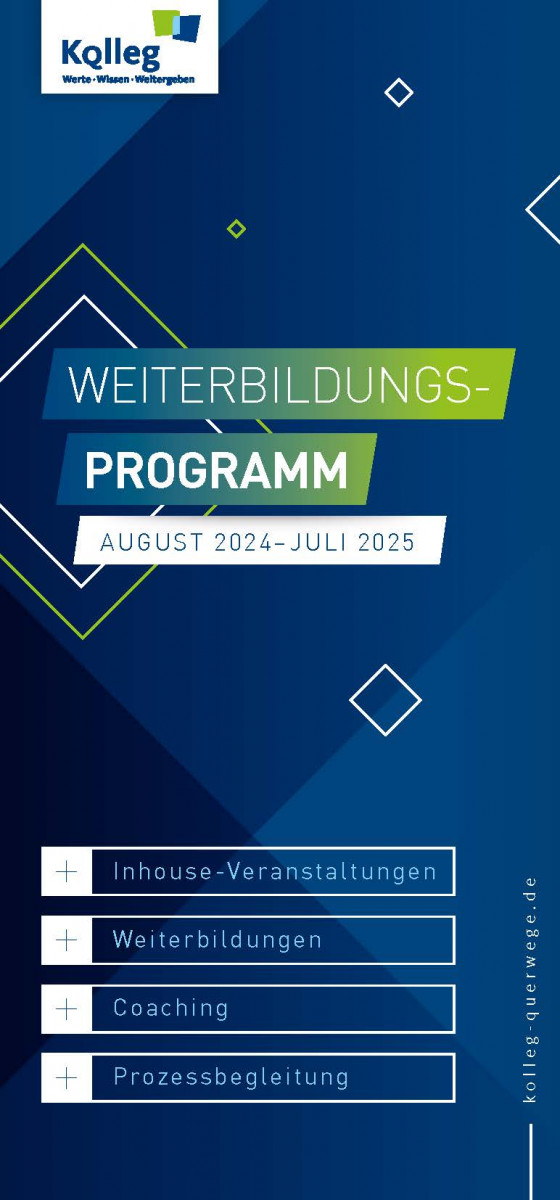 Für das kommende Schuljahr haben wir wieder spannende Veranstaltungen für pädagogische Fachkräfte in unserem Weiterbildungsprogramm versammelt. Sowohl individuell buchbare Inhouse-Themen als auch fest gepante Weiterbildungen finden sich auf den druckfrischen 58 Seiten. Online können alle Veranstaltungen über die Homepage des Kollegs gefunden und gebucht werden.