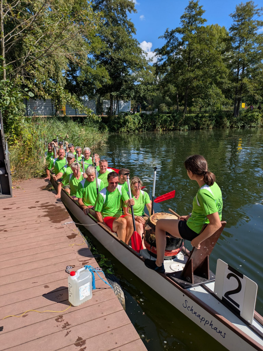 Bei tollstem Drachenboot-Wetter, mit viel guter Laune und Vorfreude trat das 21–köpfige Team (inklusive Trommler*in plus Steuermensch) am Samstag dem 6.9. an, um »voll durchzuziehen für Inklusion«, wie das Teammotto lautet. Mit 24 anderen Teams traten sie nun schon zum 10. Mal als eigenständige Mannschaft an (die ersten Jahre teilten wir ein Boot mit Vistec). Im Boot saßen Mitglieder und Mitarbeiter*innen des Vereins, wie auch Eltern und Schüler*innen.