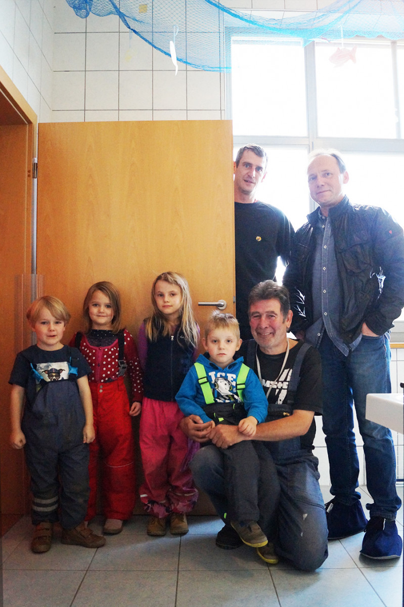 Im Juli bekam unsere Kita BiLLY zwei neue Türen mit Zarge von der Firma teuto BAUELEMENTE GmbH geschenkt. Dafür ein herzliches Dankeschön an den Geschäftsführer Karl-Heinz Grüber. In einer Wochenendaktion am 24./25. Juli haben unsere Hausmeister Sirko Zaumseil, Achim Helbing und Frank Maßberg die Türen fachgerecht eingebaut und der Kita-Betrieb konnte ungehindert am Montag weitergehen. Vielen Dank an unsere Hausmeister. Die Türen wurden durch Auflagen der Jenaer Feuerwehr und Bauordnungsamt notwendig, um einen zweiten Rettungsweg für die Kleinkindgruppe zu schaffen. Die Türen verbinden nun den Schlafraum der Kleinkindgruppe mit den Wasserspielraum und dem Atelier.