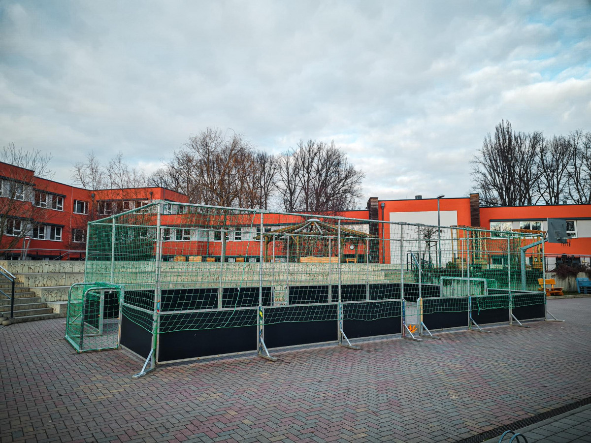 Nach vielen Monaten des Wartens wurde am 1. Dezember die renovierte Streetsoccer-Anlage im Paradies wieder aufgebaut. Unser 4–köpfiges Hausmeisterteam hatte die ramponierte Anlage in vielen, vielen Arbeitsstunden sorgfältig aufgebaut: Unter anderem mussten die Profile gewechselt, die Tore neu geschweißt und die Banden komplett erneuert werden. Das Holz dafür wurde übrigens aus der Bühne der Aula recycelt.