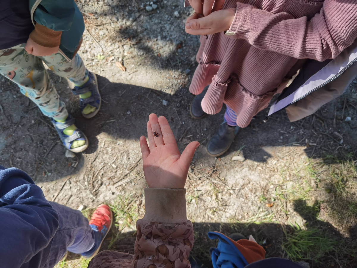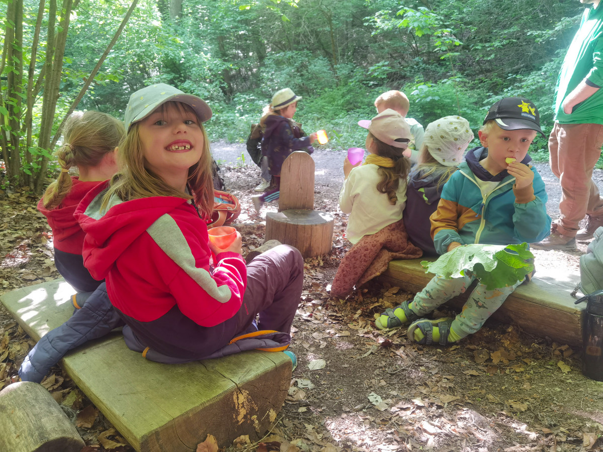 Der Aufstieg zum Jenaer Schottplatz war schon an sich ein großes Abenteuer. Wie immer, wenn die Kinder im Wald sind, haben sie viele spannende Tiere entdeckt, gefachsimpelt und es genossen, draußen zu sein. Regelmäßige Waldtage haben einen hohen Stellenwert in unserer Kita und sind fester Bestand in unserer pädagogischen Arbeit. Die Themen orientieren sich an den jahreszeitlichen Gegebenheiten, spezifischen Projekten des Teams, den Interessen der Kinder und aktuellen Ereignissen. Immer wieder können wir auch mit Hilfe von Kooperationspartner*innen und Waldexpert*innen Umweltweltbildung, naturwissenschaftliche Erkundungen wie auch erholsame Erfahrungen in der Natur unseren über 40 Kindern bieten. Als »Stadtkita« liegt es uns sehr am Herzen, der Natur in unserem Alltag einen hohen Stellenwert zu geben.