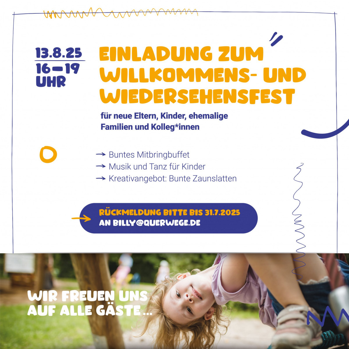 Unser BiLLY wird 20 – und das möchten wir mit allen feiern, die Teil unserer Geschichte sind oder waren: ehemalige Kinder, Familien, Wegbegleiter*innen! Am 13. August laden wir euch herzlich zu einem bunten, entspannten Nachmittag ein – mit Musik, Mitbringbüfett und viel Raum für Begegnung, Austausch und schöne Erinnerungen. Bringt gern alte Portfolios oder andere Erinnerungsschätze mit – wir freuen uns riesig aufs Wiedersehen!