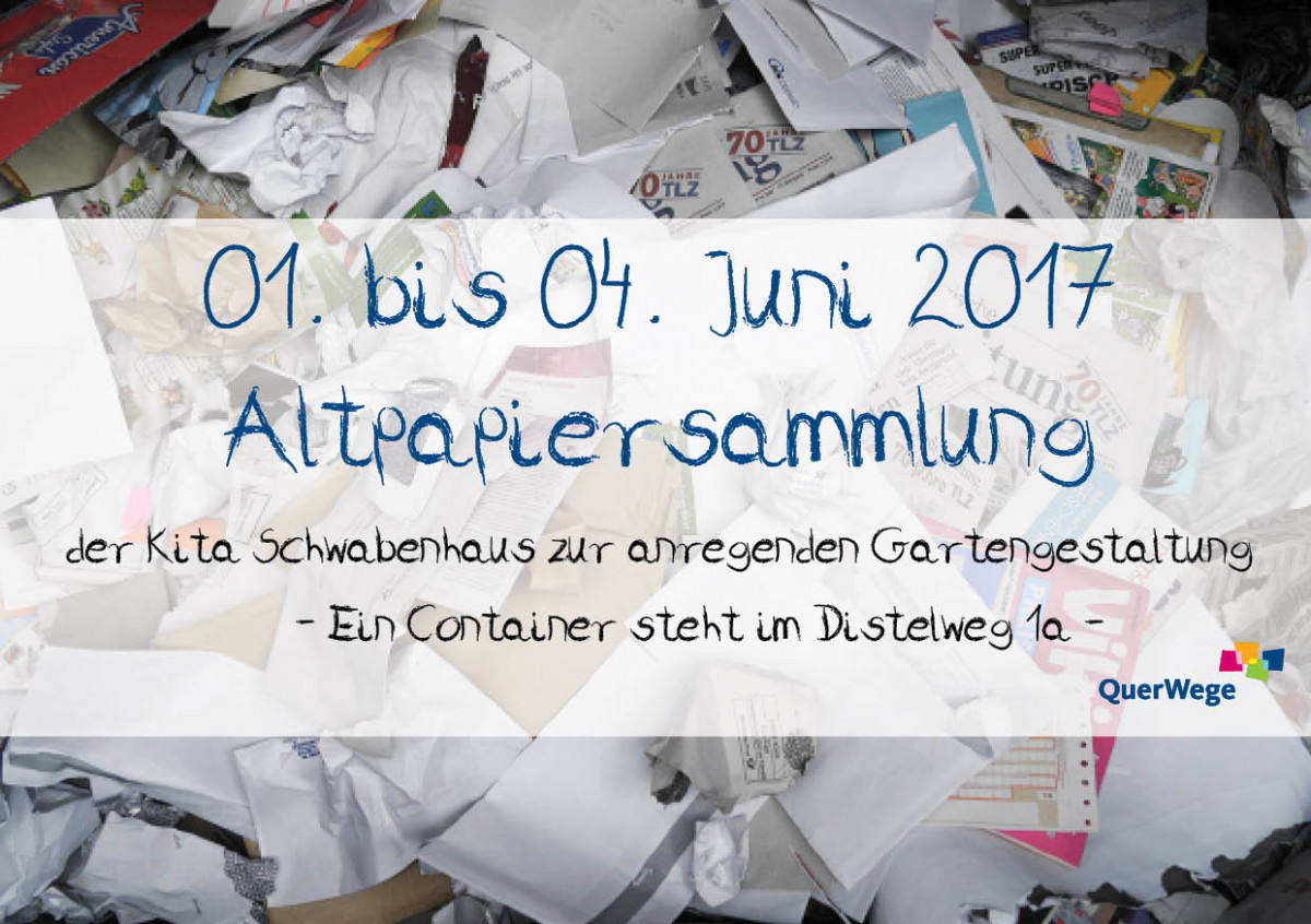 Vom 01.- 04. Juni steht erneut ein riesiger Container vor unserer Tür und der darf gern randvoll gefüllt werden mit allem, was aus Papier ist: