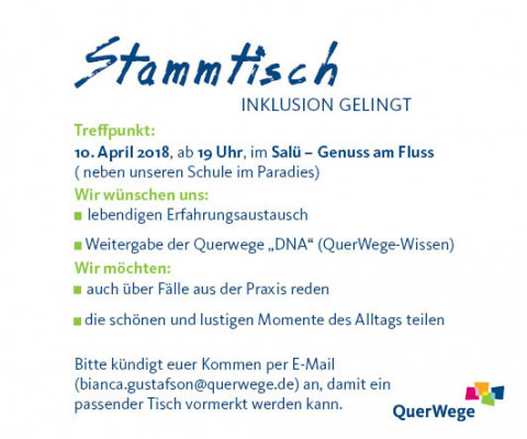 Ankündigung: Stammtisch_ Inklusion gelingt am 10. April, 19 Uhr, im Salü – Genuss am Fluss